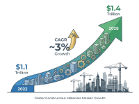 Global construction materials market is growing at a 3% CAGR, projected to reach $1.4 trillion by 2028.
